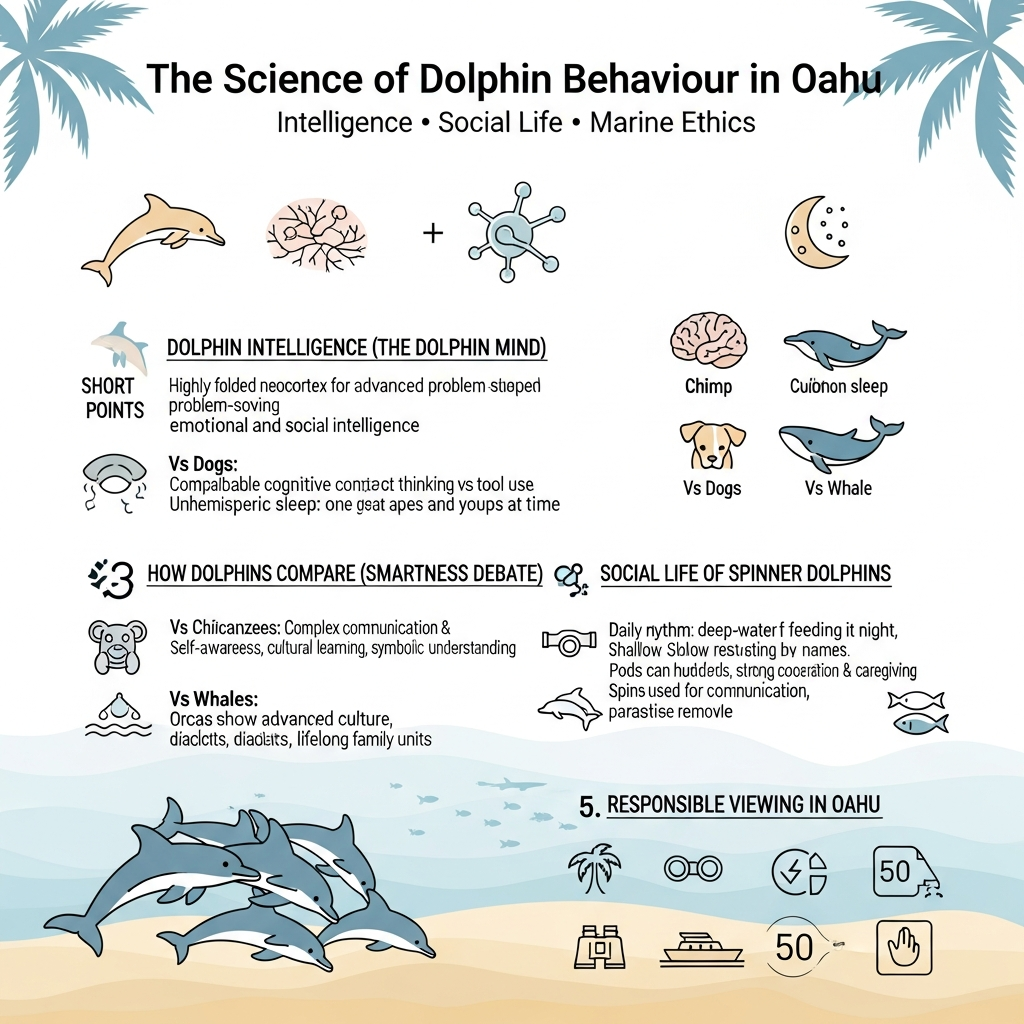 Learning about the science behind their behaviour can turn a simple wildlife sighting into a deep connection with one of the ocean’s most amazing creatures. This guide looks at the interesting world of dolphin intelligence, their complex social lives, and how you can safely watch them while you’re in Oahu. You will appreciate these smart sea animals more if you learn what makes them tick.